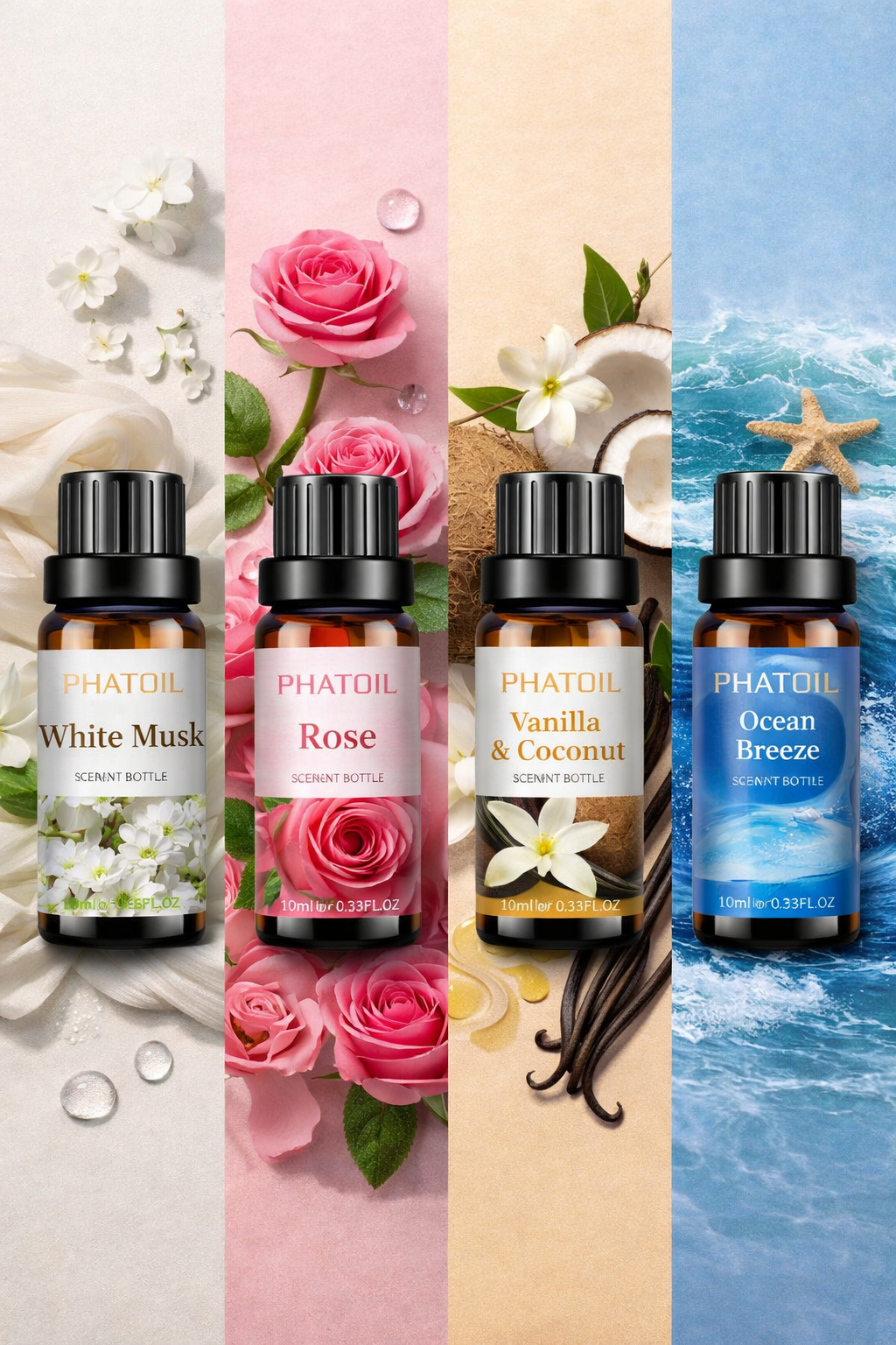 2.Versatile Usage: Whether Fragrance Oil is used in aromatherapy machines, humidifiers, diffusers, aromatherapy stoves, SPA massages, bathing, refreshing clothes, or even assisting in purifying indoor air, PHATOIL fragrance oils can be easily used.Let the natural aroma blend into every moment of your life.